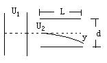 如图所示,一个α粒子(氦核)在电势差为U1=100V的电场中由静止开始加速运动,然后射入电势差为U2=10V的两块平行板的偏转电场中,偏转电场极板长L=20 cm,间距d=5 cm。若α粒子能飞离平行板区(重力可忽略),则α粒子刚进入偏转电场时的动能为 eV,飞离偏转电场时的偏移量y= m。