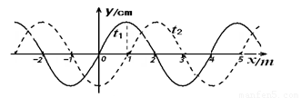 一简谐横波在x轴上传播,实线和虚线分别是t1和t2时刻的波形图,已知t2-t1=1.0s.由图判断下列波速可能的是 ( )