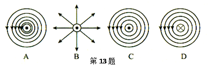 如图所示的直线电流磁场的磁感线,哪个图是正确的 ( )
