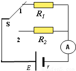 如图所示的电路中,当开关处于位置1时,理想电流表的读数I1=0.2 A;当开关处于位置2时,电流表的读数为I2=0.3 A,R1=14 Ω,并且已知R2=9 Ω,试求电源的电动势E和内电阻r.