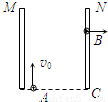 如图所示,在竖直放置的平行金属板M、N之间有一带电微粒,自A点以初速度v