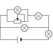 右图所示的电路中,当滑线变阻器R的滑动触头向左移动时,A、B、C、D四盏灯中亮度变暗的是