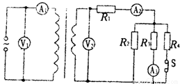 如图所示,一理想变压器原线圈接入一交流电源,副线圈电路中R1、R2、R3和R4均为固定电阻,开关S是闭合的,V1、V2为理想电压表,读数分别为U1和U2;Al、A2和A3为理想电流表,读数分别为I1、I2和I3.现断开S、U1数值不变,下列推断中正确的是