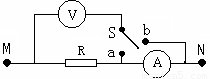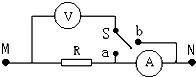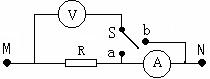 如图所示的电路为用伏安法测量金属电阻R的电路图,当S接a时,电压表示数为2.7V,电流表示数为5.0mA,当S接b时,电压表示数为2.8V,电流表示数为4.0mA,那么为了较准确测量该电阻S应接于 点(填a或b),该电阻测量值较准确的数值等于_______Ω,测量值比真实值_______(填偏大或偏小)。![]()