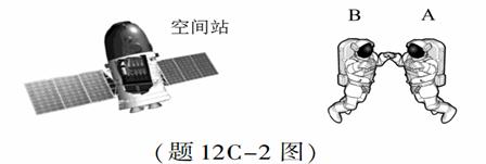 如题12C-2图所示,进行太空行走的宇航员A和B的质量分别为80kg和100kg,他们携手远离空间站,相对空间站的速度为0。 1m/ s。 A将B向空间站方向轻推后,A的速度变为0。2m/ s,求此时B的速度大小和方向。