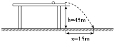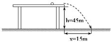 (8分)一小球在高45m的水平桌面上滚动,离开桌面后着地,着地点与桌边水平距离为15m,求:![]()