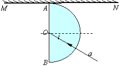 ,直径AB与屏幕垂直并接触于A点.激光a以入射角i=30°射向半圆玻璃 砖的圆心O,结果在水平屏幕MN上出现两个光斑.求两个光斑之间的距离L.
