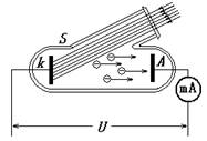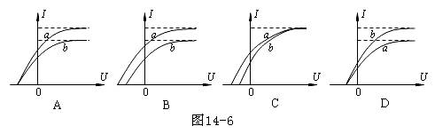 在光电效应实验中,先后用频率相同但光强不同的两束光照射同一个光电管。若实验a中的光强大于实验b中的光强,实验所得光电流I与光电管两端所加电压U间的关系曲线分别以a、b表示,则下列4图中可能正确的是