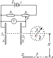 m的圆形区域内,有一个水平方向的匀强磁场,磁感应强度大小为B=0.1T,方向垂直纸面向外.竖直平行放置的两金属板A、K相距d=20