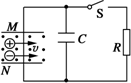 平行金属板M、N的距离为d,其中匀强磁场中的磁感应强度为B,方向垂直纸面向外(如图所示),等离子群的速度为v,沿图示方向射入,电容器电容为C,则