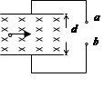如图所示,是等离子体发电机的示意图,磁感应强度为B,两板间距离为d,要使输出电压为U,则等离子的速度V为_______,a是电源的_____极。