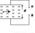 如图所示,是等离子体发电机的示意图,磁感应强度为B,两板间距离为d,要使输出电压为U,则等离子的速度V为_______,a是电源的_____极。![]()