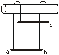 如图所示,两金属杆ab和cd长均为L,电阻均为R,质量分别为M和m.用两根质量、电阻均可忽略的不可伸长的柔软导线将它们连成闭合回路,并悬挂在水平、光滑、不导电的圆棒两侧,两金属杆都处于水平位置,整个装置处于与回路平面垂直、磁感应强度为B的匀强磁场中,若金属杆ab正好匀速向下运动,求运动的速度。