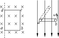 如图所示,N匝矩形线圈abcd面积为S,在磁感应强度为B的匀强磁场中绕ad边以角速度ω从中性面位置开始匀速转动,试推导经过时间t时线圈中的感应电动势的表达式。
