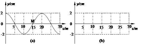 一列简谐横波在x轴上传播,波速为50 m/s,已知t=0时刻的波形图如图(a)所示,图中x=15m处的M质点此时正经过平衡位置沿y轴的正方向运动.![]()