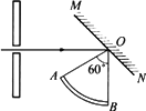 如图所示,平面镜MN以ω=π/3rad/s的角速度绕垂直于纸面的且过O点的轴转动,AB为一段圆弧形屏幕,它的圆心在O点张角为60°.现有一束来自频闪光源的细平行光线,沿固定方向射向平面镜的O点,若光源每秒闪12次,则镜每转一周在屏幕AB上出现的光点数最多是