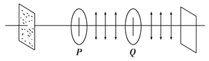 如图12-2-10所示,让太阳光或白炽灯光通过偏振片P和Q,以光的传播方向为轴旋转偏振片P和Q,可以看到透射光的强度会发生变化,这是光的偏振现象,这个实验表明( )![]()