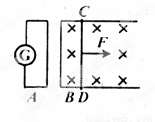 如图所示,A线框接一灵敏电流计,B线框放在匀强磁场中,B线框的电阻不计,具有一定电阻的导体棒可沿线框无摩擦滑动,今用恒力F向右拉CD由静止开始运动,B线框足够长,则通过电流计中的电流方向和大小变化是( )