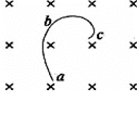 | A、带正电,运动方向a→b→c | B、带负电,运动方向c→b→a | C、带负电,运动方向a→b→c | D、带正电,运动方向c→b→a |
