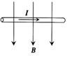 如图所示,一通电直导线与匀强磁场方向垂直,导线所受安培力的方向是( )