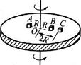 如图所示,A、B、C三个物体放在水平旋转圆台上相对静止,它们跟圆台间的最大静摩擦力均等于各自重力的k倍,A的质量为2m,B和C的质量均为m,A、B离轴的距离为R,C离轴的距离为2R,则当圆台旋转时![]()