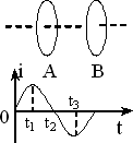 如图,平行正对的两金属圆环A、B,在A中通以图示的交流电时,下列说法中正确的是