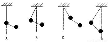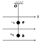 如左图所示,a、b两带电小球电荷量分别为-q和q,质量均为m,两球用丝线相连,a球又用丝线挂在O点,加一个水平向右的匀强电场,平衡后两线都拉紧,两球所处位置可能是右图中的
