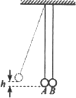 如图所示,两个半径相同的小球A、B分别被不可伸长的细线悬吊着,静止时两根细线竖直,两小球刚好接触,且球心在同一条水平线上。现向左移动小球A,使A球与最低点的高度差为h(悬吊A球的细线张紧),然后无初速释放小球A,小球将发生碰撞。碰撞过程没有机械能损失,且碰撞前后小球的摆动平面不变。碰后A、B上升的最大高度分别为