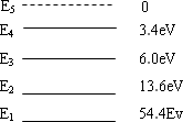 E1=-54.4 eV,氦离子能级的示意图如图所示.在具有下列能量的光子中,不能被基态氦离子吸收而发生跃迁的是A.40.8 eV E4 3.4 eV
