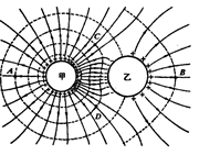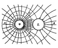 空间存在甲、乙两相邻的金属球,甲球带正电,乙球原来不带电,由于静电感应,两球在空间形成了如图所示稳定的静电场.实线为其电场线,虚线为其等势线,A、B两点与两球球心连线位于同一直线上,C、D两点关于直线AB对称,则![]()