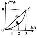如下图所示,直线OAC为某一直流电源把其他形式的能转化为电能的功率P随电流I变化的图线;抛物线OBC为同一直流电源内部消耗的热功率