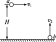 如图所示,物体1从高H处以初速度v1平抛,同时物体2从地面上以速度v2竖直上抛,不计空气阻力,若两物体恰能在空中相遇,则 ( )![]()