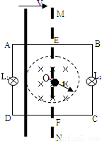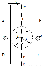 (1)若棒以匀速率向右水平滑动,如图所示.当滑过AB与DC边中点E、F时,灯L