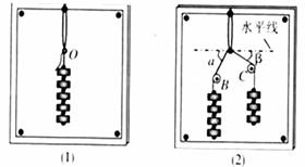 C.将步骤B中的钩码取下,分别在两根细线上挂上4个和3个质量相等的钩码,用两光滑硬棒B、C使两细线互成角度,如下图(2)所示,小心调整B、C的位置,使 ,记录 。