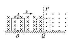 如右图所示,在光滑水平面上方,有两个磁感应强度大小均为B、方向相反的水平匀强磁场,如图所示,PQ为两个磁场的边界,磁场范围足够大.一个边长为a,质量为m,电阻为R的正方形金属线框垂直磁场方向,以速度v从图示位置向右运动,当线框中心线AB运动到与PQ重合时,线框的速度为