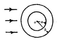 用折射率为n的透明介质做成内、外半径分别为a和b的空心球,如图所示,当一束平行光射向此球壳,经球壳外、内表面两次折射后,能进入空心球壳的入射平行光线的横截面积是多大?