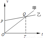甲乙两车在平直道路上同向运动,其v--t图象如图所示,图中△OPQ和△OQT的面积分别为S1和S2(S2>S1),初始时甲车在乙车前方S处,则下列说法正确的是( )