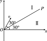 ,第一象限内有两个方向都垂直纸面向外的匀强磁场区域I和II,直线OP是它们的边界,OP上方区域I中磁场的磁感应强度为B。一质量为m,电荷量为q的质子(不计重力)以速度v从O点沿与OP成