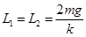 如图所示,物体A和B的质量均为m,它们通过一劲度系数为k的轻弹簧相连,开始时B放在地面上,A、B都处于静止状态.现用手通过细绳缓慢地将A向上提升到距离L1时,B刚好要离开地面,此过程手做功为W1;若将A加速向上提起,A上升的距离为L2时,B刚好要离开地面,此过程手做功W2.假设弹簧一直处于弹性限度内,则![]()