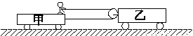 (8分)如图所示光滑水平地面上停放着甲、乙两辆相同的平板车,一根轻绳跨过乙车的定滑轮(不计定滑轮的质量和摩擦),绳的一端与甲车相连,另一端被甲车上的人拉在手中,已知每辆车和人的质量均为30 kg,两车间的距离足够远.现在人用力拉绳,两车开始相向运动,人与甲车保持相对静止,当乙车的速度为0.5 m/s时,停止拉绳.求:![]()