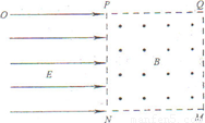 ⑶若图中电场方向改为竖直向下,场强大小未知,匀强磁场的磁感应强度变为原来的4倍,当粒子从O点以水平速度v0射入电场,从PN的中点进入磁场,从N点射出磁场,求带电粒子的初速度v0。