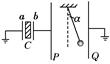 如图13所示,C为中间插有电介质的电容器,a和b为其两极板,a板接地;P和Q为两竖直放置的平行金属板,在两板间用绝缘线悬挂一带电小球;P板与b板用导线相连,Q板接地.开始时悬线静止在竖直方向,在b板带电后,悬线偏转了角度α.在以下方法中,能使悬线的偏角α变大的是 ( )![]()