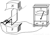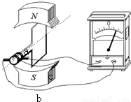 如图所示,矩形线圈abcd在匀强磁场中沿逆时针方向匀速转动,可产生交流电.当线圈转到图示位置时,电流表指针偏向右方,当线圈由图示位置继续转动,下列说法中正确的是 ( )