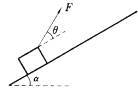 如图所示,质量为m的物体恰好能在倾角为a的斜面上匀速下滑,如在物体上施加一个力F使物体沿斜面匀速上滑,为了使得力F取最小值,这个力与斜面的倾斜角q为多大?这个力的最小值是多少?如果要求力把物体从斜面的底端拉到最高点做功最少,求拉力的方向和所做的最小的功。(设斜面长l)