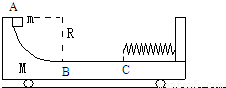 质量为M的小车置于光滑水平面上。小车的上表面由1/4圆弧和平面组成,车的右端固定有一不计质量的弹簧,圆弧AB部分光滑,半径为R,平面BC部分粗糙,长为L,C点右方的平面光滑。滑块质量为m ,从圆弧最高处A无初速下滑(如图),与弹簧相接触并压缩弹簧,最后又返回到B相对于车静止。求: