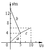 右图中的线段a、b、c分别表示在光滑水平面上沿同一条直线运动的滑块Ⅰ、Ⅱ和它们发生正碰后结合体的位移图线。由图象给出的信息可以判定:( )![]()