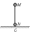 如图所示,长L的轻杆两端分别固定有质量相同的小球M、N(可视为质点)整个装置竖直立于光滑水平面上,N球所在位置是O点。将该装置由静止释放后,由于轻微的扰动而自动倒下。下列说法中正确的是[ ]