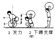 举重运动是力量和技巧充分结合的体育项目.就“抓举”而言,其技术动作可分为预备、提杠铃、发力、下蹲支撑、起立、放下杠铃等六个步骤,如图所示表示了其中的几个状态.在“发力”阶段,运动员对杠铃施加恒力作用,使杠铃竖直向上作匀加速运动;然后运动员停止发力,杠铃继续向上运动,当运动员处于“下蹲支撑”处时,杠铃的速度恰好为零.从运动员开始“发力”到“下蹲支撑”处的整个过程历时0.8s,杠铃升高0.6m,该杠铃的质量为150kg.(g取10m/s2) 求:![]()