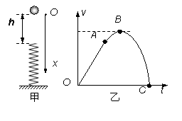 放置,下端固定在水平地面上,一质量为m的小球,从离弹簧上端高h处自由下落,接触弹簧后继续向下运动.若以小球开始下落的位置O点为坐标原点,设竖直向下为正方向,小球的速度v随时间t变化的图象如图乙所示.其中OA段为直线,AB段是与OA相切于A点的曲线,BC是平滑的曲线,则关于小球的运动过程,下列说法正确的是