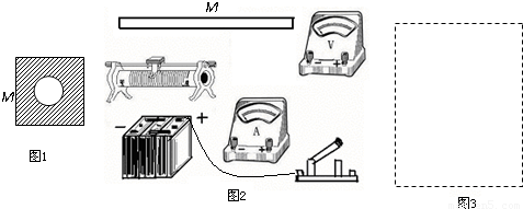 有一根细长而均匀的金属材料样品,截面为外方(正方形)内圆,如图所示。此金属材料质量约为0.1—0.2kg,长约为30cm,电阻约为10Ω。已知这种金属的电阻率为